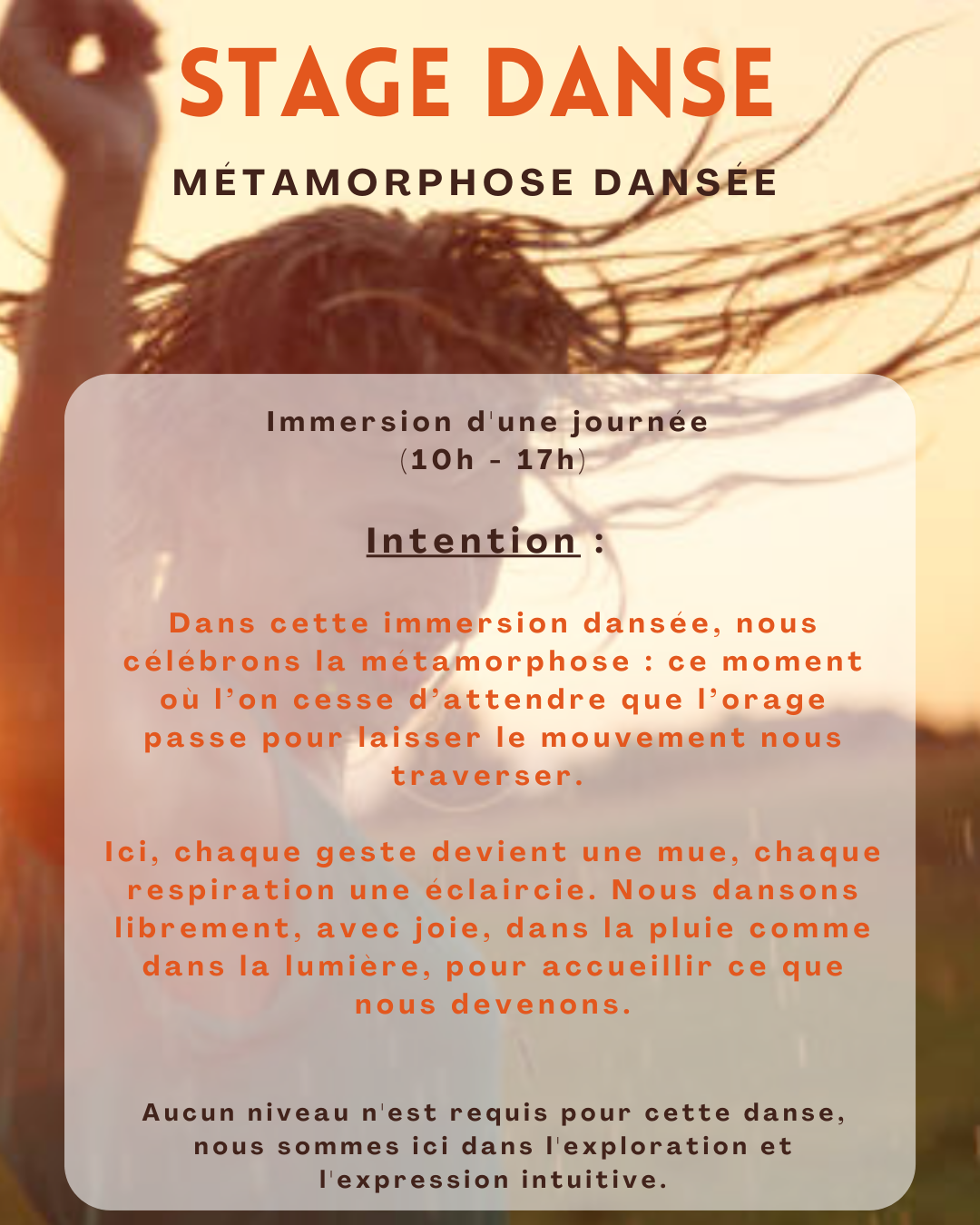 Notre danse est une métaphore de la vie. Elle nous appelle à libérer un élan vital, une qualité d’inspiration et de présence.